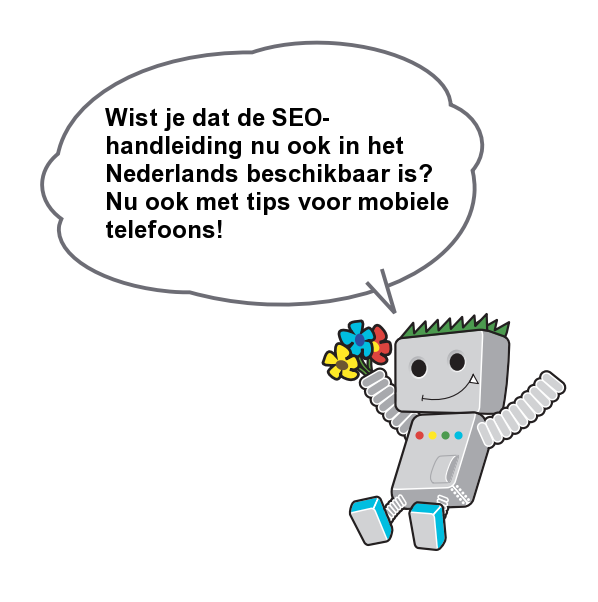 Hij was al beschikbaar in 10 andere talen, en we zijn dan ook blij om aan te kunnen kondigen dat vanaf nu de handleiding voor zoekmachineoptimalisatie (SEO) ook in het Nederlands beschikbaar is.